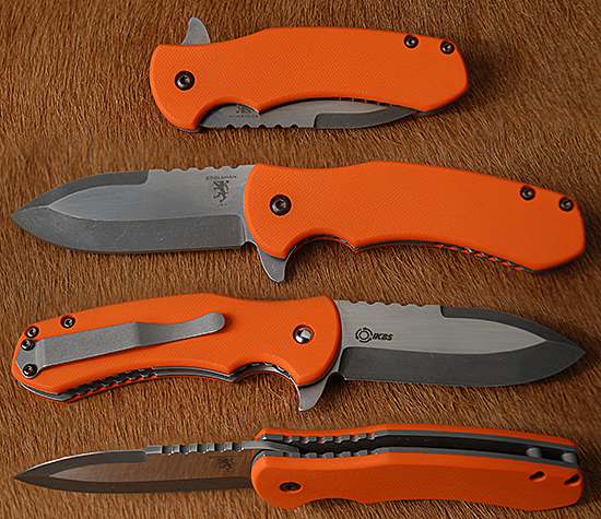Gladiator flipper by Sam Eddleman features a two tone blade with stonewashed/etched grinds with hand rubbed flats, notched thumbrest and a flipper. Knife also features IKBS.