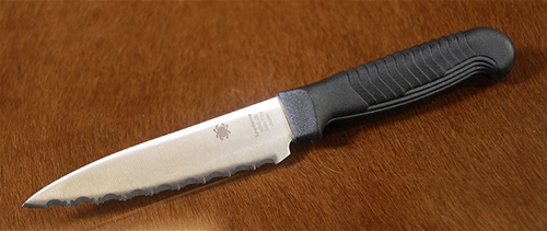 The K05 Utility Knife has a 4.48-inch drop-point blade that offers an excellent balance of control and cutting performance. This makes it incredibly versatile and adaptable to many kitchen cutting chores and utility applications. Like the original version, it features a premium MBS-26 stainless steel blade, ground exceptionally thin and meticulously heat treated for optimal edge retention. Its durable polypropylene plastic handle is injection molded directly onto the tang of the blade and features a distinctive “stepped” texture pattern that provides amazing comfort and control during use.